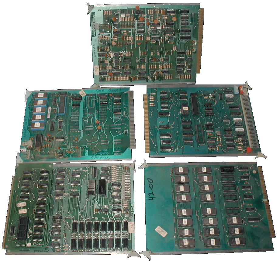 The G80 consisted of a card cage and a six slot backplane with around ten different cards available depending upon the game: vector vs raster, a few sound boards, a speech board, two different RAM boards, and the game logic board. As the name implies, this is a Z80 based system. For raster-based systems, this was a Z80 at 8MHz, and for vector-based systems this was a Z80 at 3.86MHz. For sound, the G80 used the Sega SN76496 at either 4MHz or 2MHz, a Sega Melody Generator, and an optional GI SP0250 speech synthesizer. The soundboard also made use of an Intel i8035 MCU at 3.12MHz. Depending upon the raster or vector option a different Sega display controller would be used and these offered 64 to 128 colors on screen from a palette of 256, 28 to 32 sprites with 4 colors per sprite, and a 6bit color depth. Raster systems had 14K RAM, and vector system had 10K RAM.