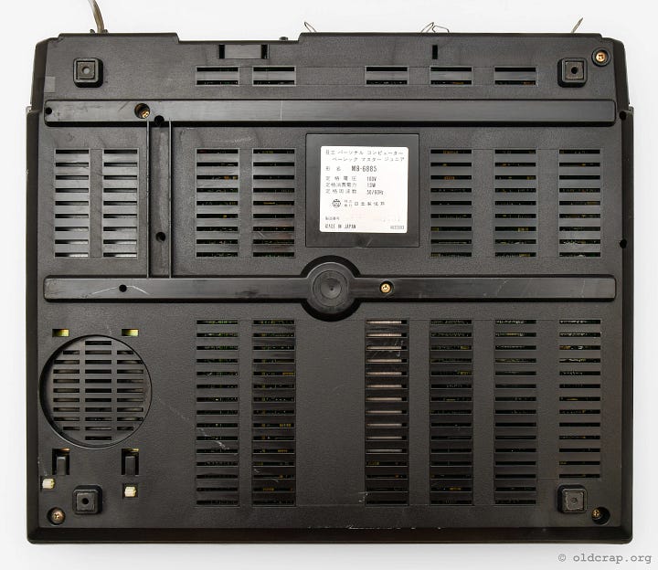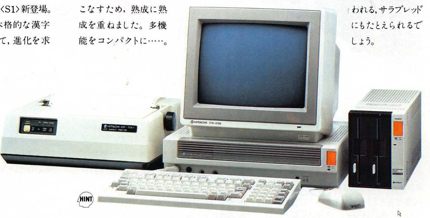 With many different machines capable of taking the high-end market, the Hitachi HD68B09E (Motorola 68B09) at 2MHz was used to create the MB-S1 series of computers in 1984. The S1/10 shipped with 48K RAM, 48K VRAM, and Microsoft BASIC. The form factor was now a desktop machine rather than the wedge, and the formerly expensive and high-end peripherals were quotidian. The S1/20 was essentially the same machine but added a ROM card containing kanji. The S1/30 and S1/40 were the next SKUs in this line, and these integrated the floppy disk drives into the computer’s housing, and these were higher capacity 1MB floppies. In 1985, the S1/10 was released as an S1/10AV adding six voice audio, and Atari-compatible joystick ports. The S1/15, and S1/45 took the 10 and 40 and added a communications ROM and an RS232C port.