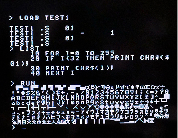 The 6880 was built around a Hitachi-made Motorola 6800 at 750kHz, 4K RAM, and 8K ROM (featuring an integer BASIC). The display output was either 32 by 24 characters or 64 by 48 pixels. For mass storage, the computer could make use of a 300bps cassette interface. The very next year, the 6880L2 was released doubling the RAM and ROM and adding floating point.