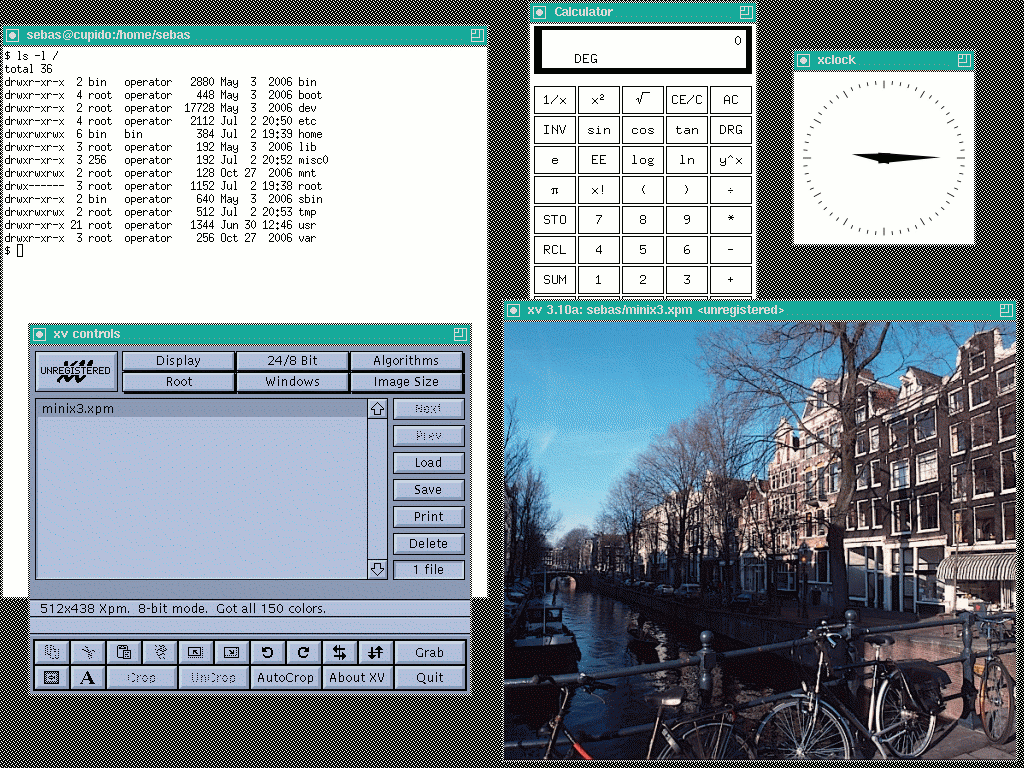 As noted, the fact that UNIX source code and documentation were issued with each license, UNIX was often used as the basis for the educational study of operating systems. Andrew Tanenbaum at Vrije Universiteit Amsterdam in Amsterdam Netherlands created an operating system called MINIX in 1987. MINIX version 1 was system call compatible with UNIX v7, but was intended to be run on the IBM PC and compatibles (16-bit x86). This was used with his course’s textbook Operating Systems: Design and Implementation. The source and binaries were on a floppy disk that came with the book.