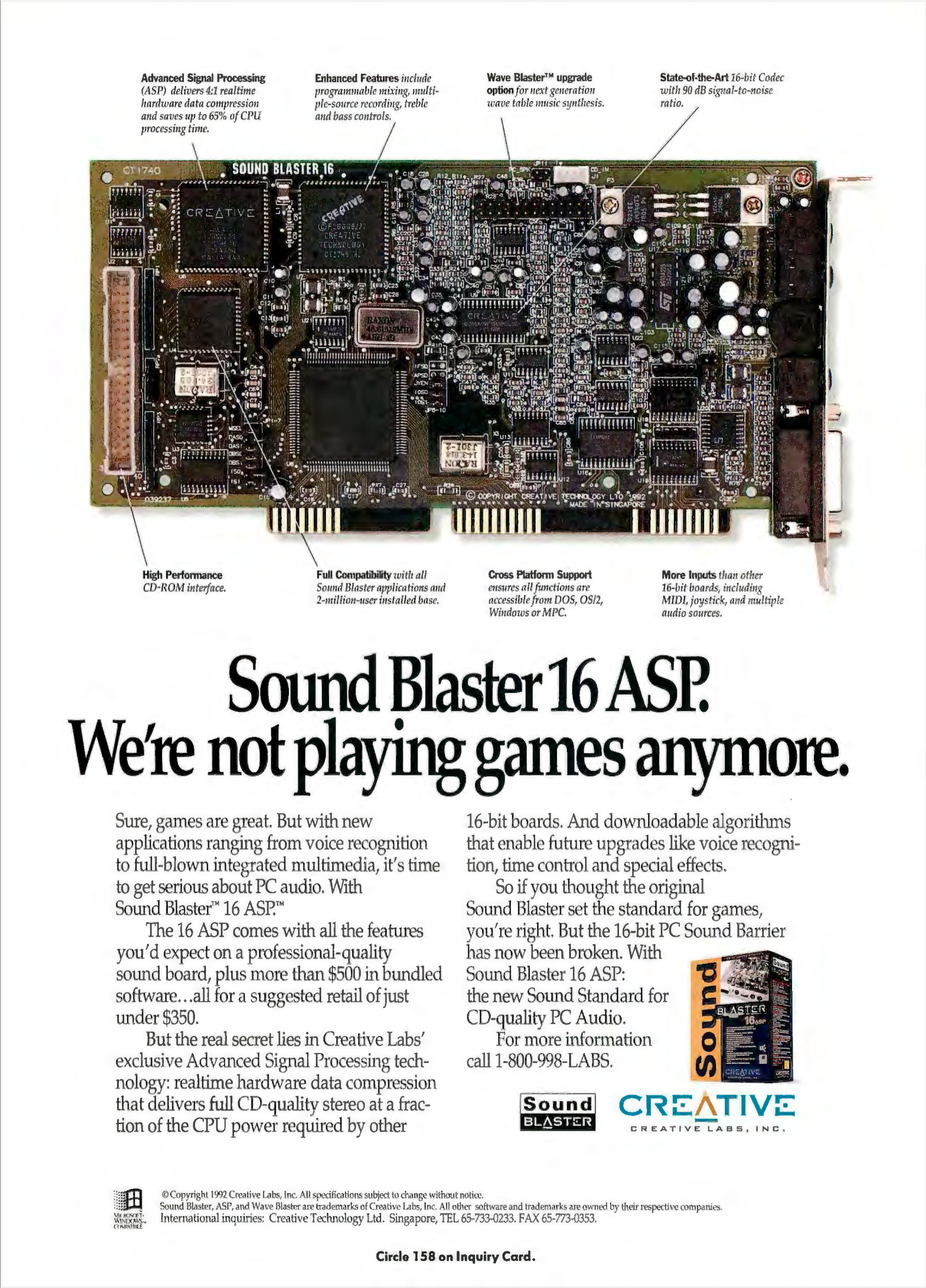 Creative was growing quickly, achieving an estimated 72% market share of the sound card market globally in 1992, but it was also facing significant competition. Media Vision’s Pro Audio Spectrum Plus, released in 1991, was capable of 8bit digital sampling and 16bit digital audio playback. It featured a CD-ROM interface, and it was Sound Blaster compatible. The Pro Audio Spectrum 16 of 1992 moved the company to 16bit ISA, added 16bit stereo digital audio, and featured stereo FM synthesis while maintaining full Sound Blaster compatibility. Then, there was Aztech in the more low-end market making some serious OEM deals with likes of Dell and Compaq. They entered the market in 1992 at a much lower price point and offered broad compatibility with sound cards like the Adlib, Sound Blaster 2, Sound Blaster Pro, Cover Speech Thing, Disney Sound Source, and Windows Sound System.