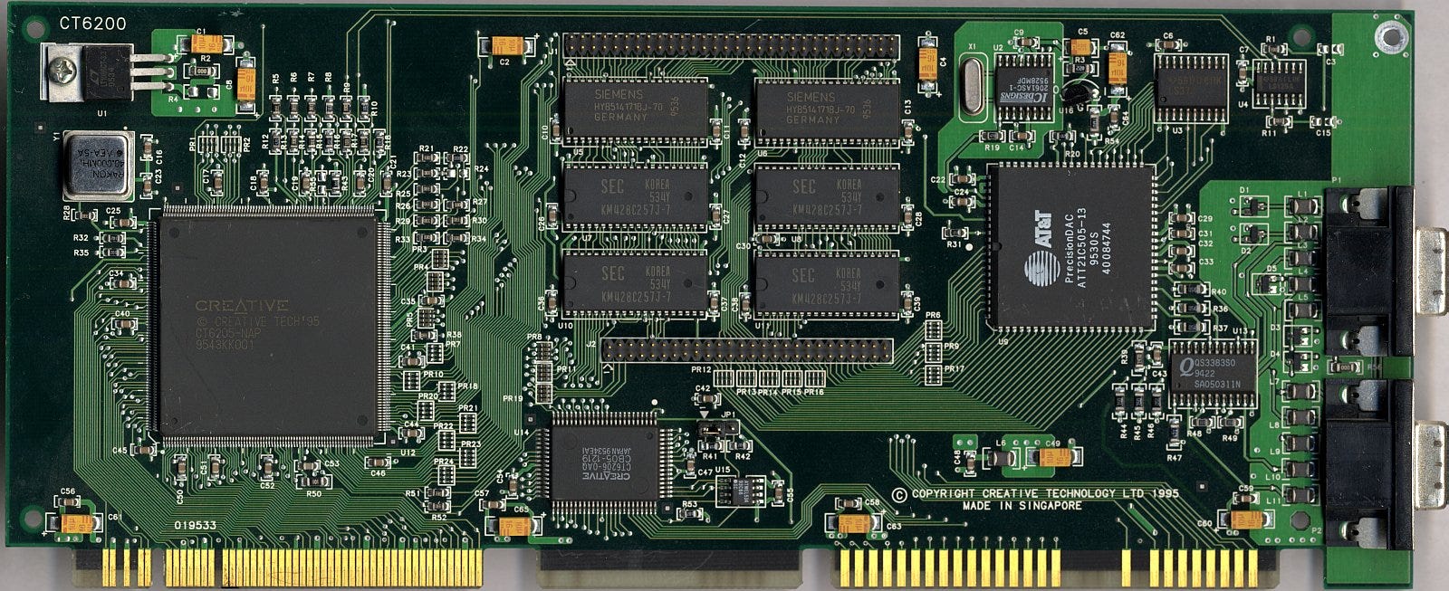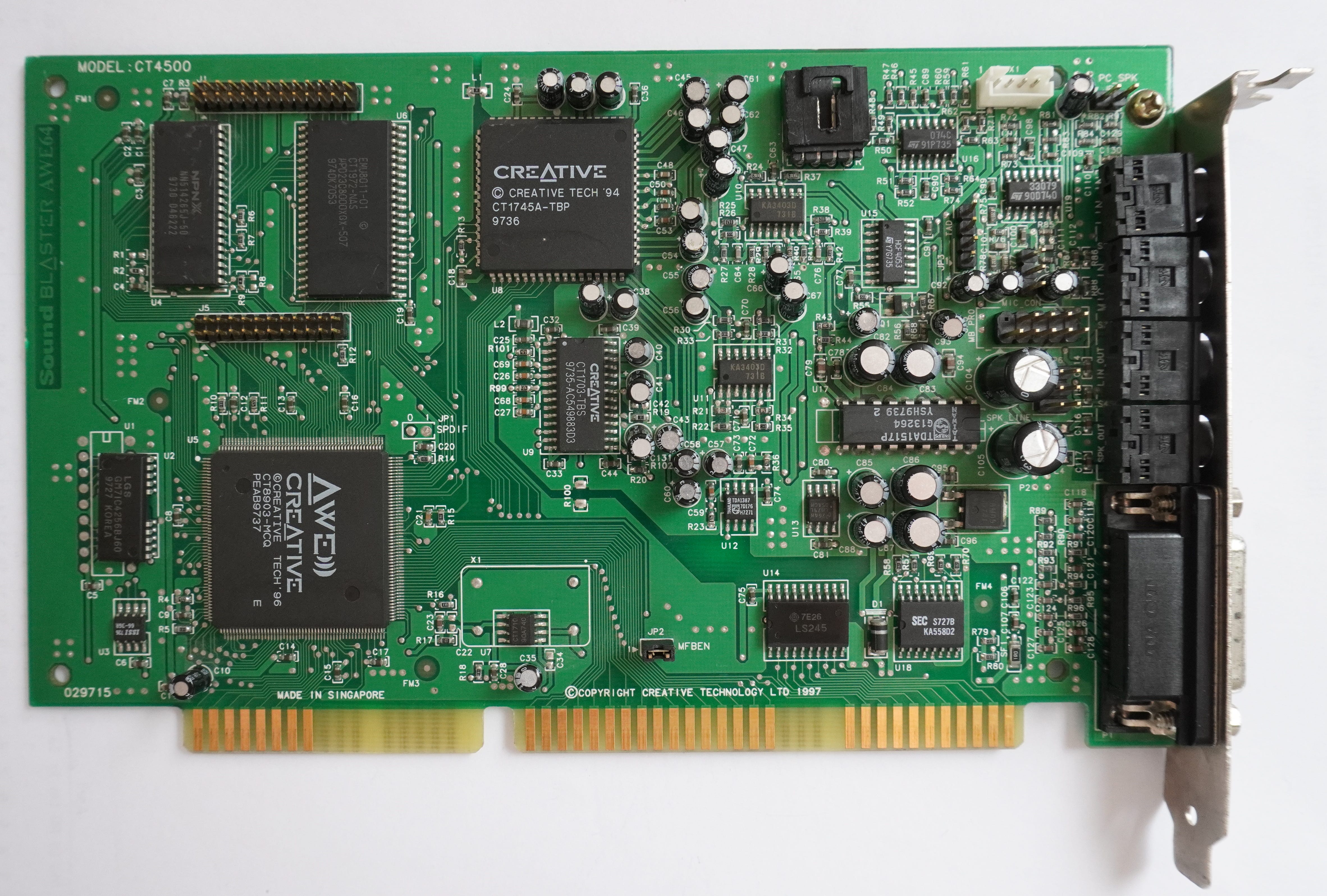 In August of 1998, Creative released the Sound Blaster Live! (CT4670) as a successor to the ViBRA range of sound cards. These were built around the EMU10K1 chip and supported DirectSound3D, EAX (Environmental Audio Extensions) versions 1 and 2, and featured an onboard, 64-voice, wavetable synthesizer though it did use main memory for sample storage. This was a PCI bus card, and it utilized Ensoniq’s TSR for the emulation of Adlib, Sound Blaster, and General MIDI (the adaptation of that TSR was a condition of the acquisition of Ensoniq).