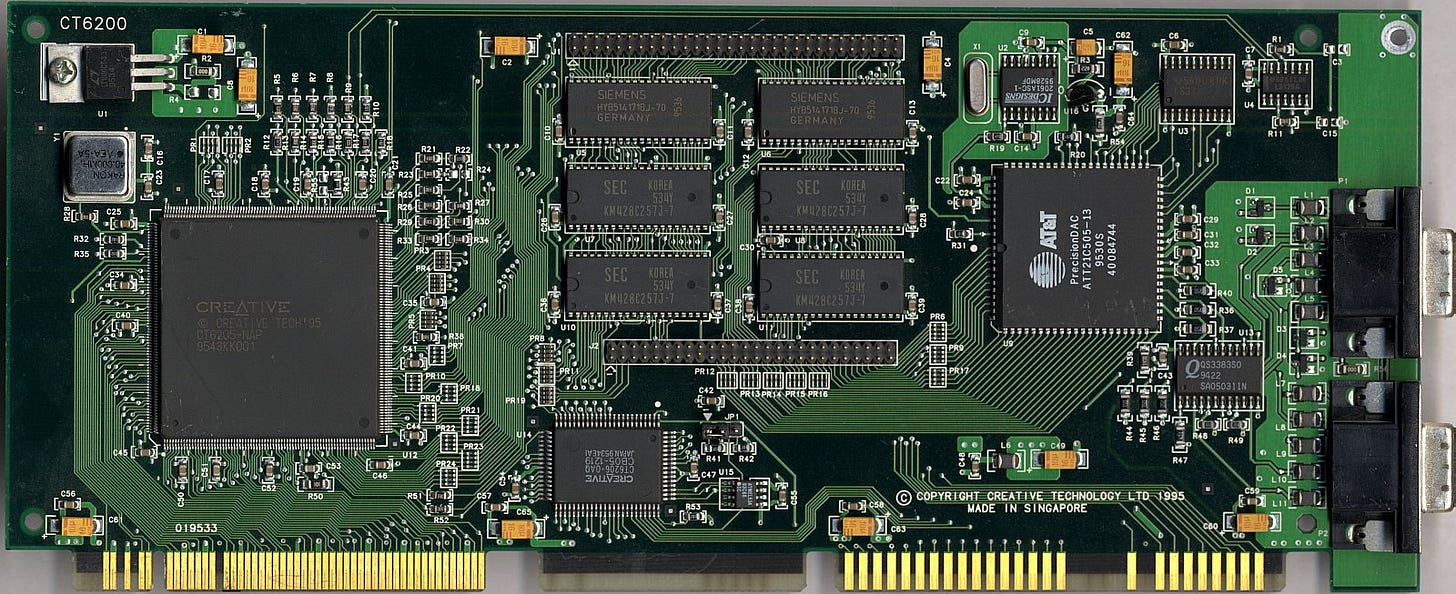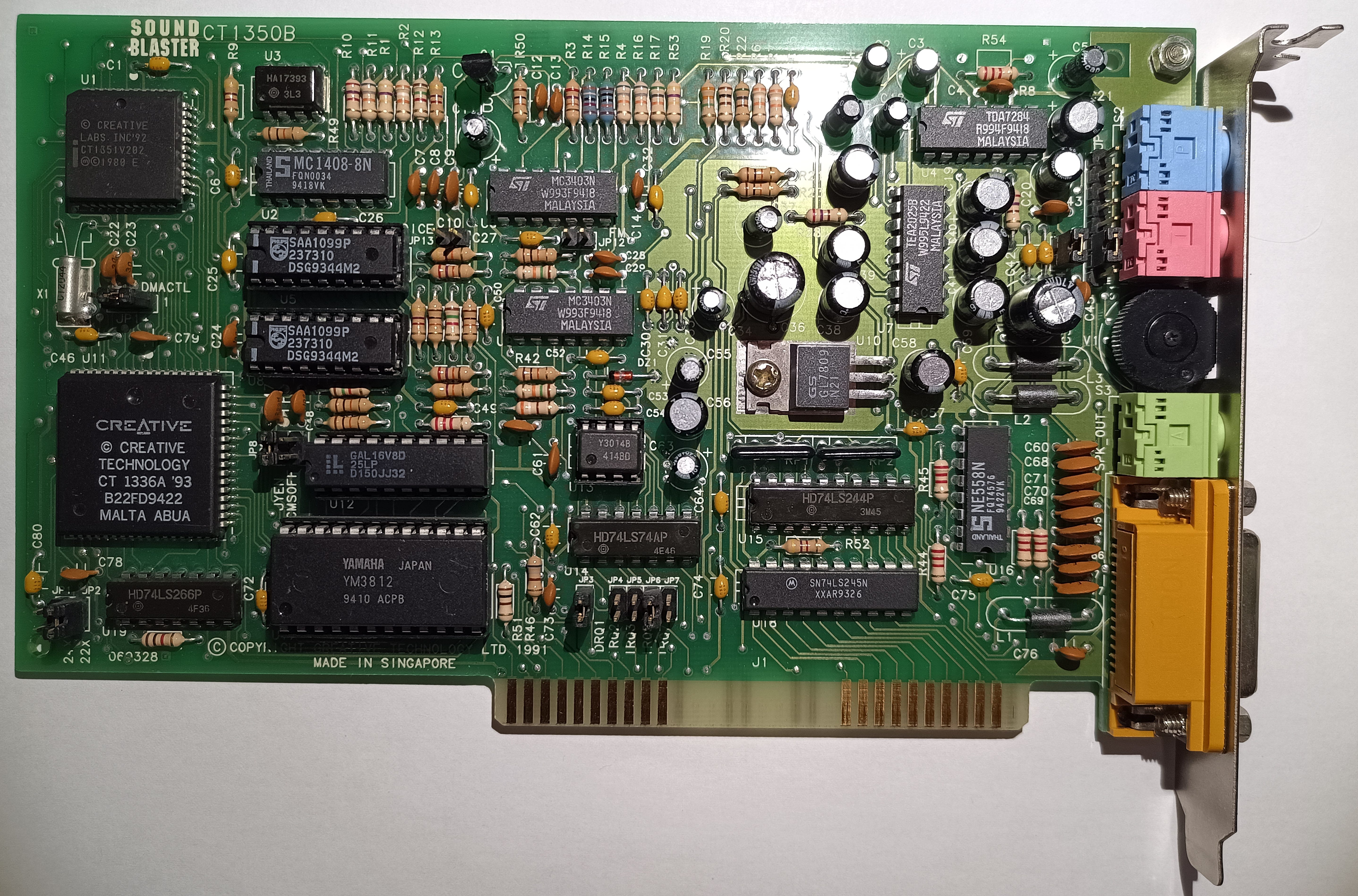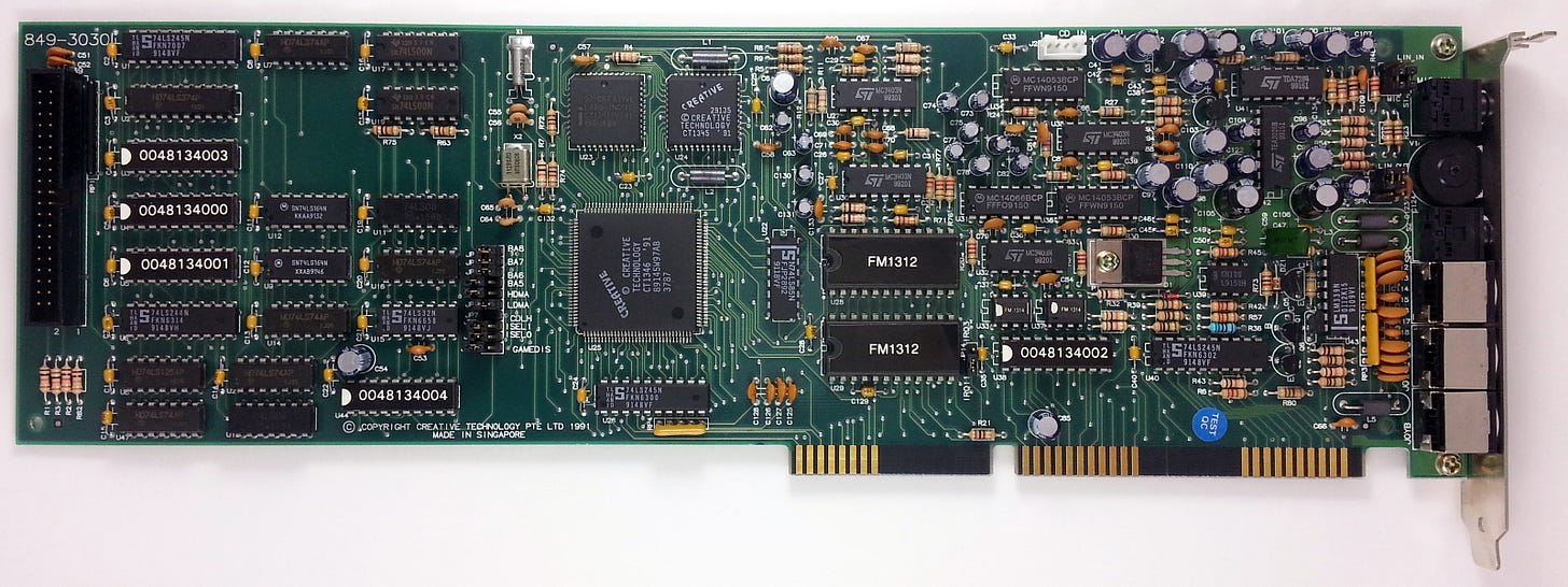To better compete, Creative needing something that was better than the Adlib but still compatible with it. This came in 1989 with the CT1310, better known as the Sound Blaster. The Sound Blaster offered 12-voice C/MS stereo sound, 11-voice FM synthesis with Adlib compatibility (via the Yamaha YM3812), a MIDI interface, a joystick port, microphone jack with a built-in amplifier, a stereo amplifier with volume dial, the ability to play back mono-sampled sound at up to 22kHz, and record at 12kHz. While a sample rate of 22k doesn’t seem great (because it isn’t) this did allow simultaneous output of sound effects and music in a game. Likewise, while a game port doesn’t seem like all too big a deal, it saved the buyer an extra $50 to buy one separately, and it saved an ISA slot too. The Sound Blaster was the first sound card to feature digital sample playback, and it took over the market, quickly becoming the top-selling expansion card of any kind in under a year, and Creative’s revenues hit $5.5 million. With the C/MS never having been too popular, Creative followed the CT1310 with the CT1320 which removed the C/MS chips but kept sockets for them on the card.