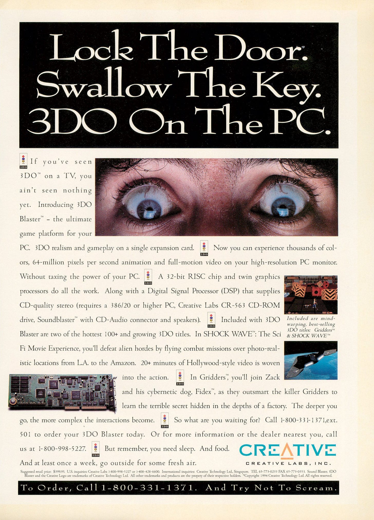 With the introduction of 3DO Blaster, Creative is targeting their extensive installed base of CD-ROM users. 3DO Blaster provides PC owners with the ultimate game platform — exciting 3DO games recognized for unprecedented interactive realism, full-motion video, CD-quality audio and three-dimensional sound effects.