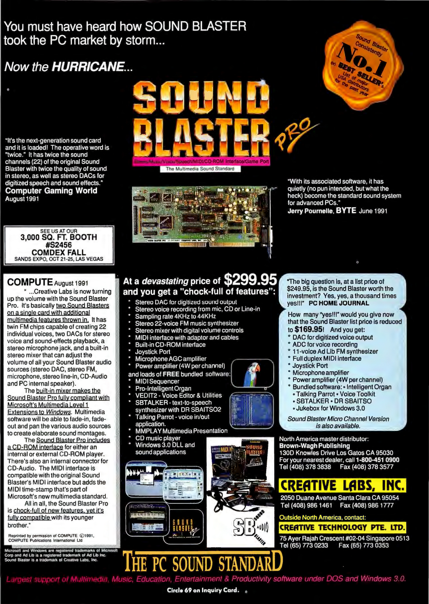 Realizing that the sound features of the CUBIC CT were likely more salable and supportable than the computer itself, Sim and his company chose to sell the sound card by itself as the Creative Music System (also C/MS or CT-1300). This board was built around two Philips SAA1099 chips providing 12 channels of square-wave stereo sound on a half-length 8bit ISA card, and it shipped with five 360K 5.25 inch floppy disks (Master Disk, Intelligent Organ, Sound Disk 1, Sound Disk 2, Utilities). To promote this card, Sim moved to California in 1988 and established Creative Labs. His goal was to sell at least 20,000 cards generating $1 million in revenue. The USA was the largest PC market, and he knew that sound cards were seeing good sales.